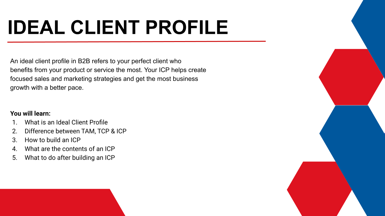 This course teaches you how to build a powerful ICP framework that aligns your marketing, sales, and delivery functions for maximum business impact. Learn how to segment your market using TAM-TCP-ICP hierarchy, reverse-engineer past wins and losses, and validate your ICP through a 10-account pilot. You'll gain tools to define five core ICP characteristics, run cross-functional workshops, and gather real intent data through founder-led interactions. Whether you’re refining GTM strategy or launching new campaigns, this course helps you focus only on the right-fit customers to accelerate your growth engine.